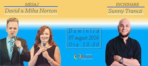 DUMINICA 07 AUGUST - ORA 10:00 Inchinare: SUNNY TRANCA Mesaj: DAVID & MIHA NORTON De la ora 09:30 - partasie, limonada, cafea proaspata :) Va asteptam cu drag!