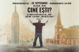 Biserica SperanÈ›a Linz are onoarea să găzduiască È™i în acest an ConferinÈ›a Regională de Tineret pe Nord-Vestul Austriei. ConferinÈ›a se va desfășura Sâmbătă, 24 Septembrie intre orele 16.00 È™i 20.00. Tema ConferinÈ›ei „Cine eÈ™ti? ” va fi dezbătută de Caleb Nechifor. Lauda È™i închinarea va fi condusă de Corul Regional …