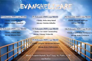 ÃŽn perioada 19 – 26 februarie 2017, la Biserica Baptista Harul din Lugoj ,vor avea loc seri speciale cu caracter de evanghelizare. Programul este urmatorul: Duminica,19 feb ora 17:00 – Grupul Mesaj, Ionut Dumitru Luni, 20 feb ora 18:00 – Tabita Ianc, Marius Ianc Marti, 21 feb ora 18:00 – …
