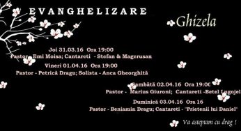 Din 31 martie 2016 pana in 3 aprilie 2016 vor avea loc seri de evanghelizare la Biserica Baptista Nadejdea Ghizela.…