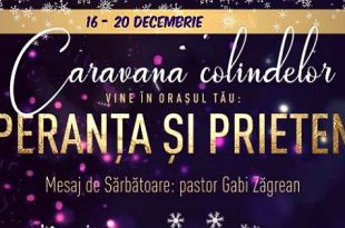 Carvana Colindelor cu Grupul „SperanÈ›a È™i Prietenii†vă invită să vă bucuraÈ›i de Sărbătoarea NaÈ™terii Domnului. Vă vor colinda: Gabriel È™i Genoveva Gorcea, Cristi È™i Emma Repede, IonuÈ› È™i Adela Crăciun, Andrei È™i Denisa Èšibrea, Andrei È™i Camelia CiurdaÈ™, Alin È™i Florina Jivan, Alina Călina, Alin È™i Emima Timofte. Vestea …