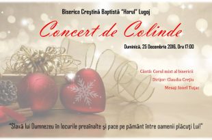 Duminica, 25 decembrie 2016, de la ora 17:00, la Biserica Baptista Harul din Lugoj, va avea loc o seara speciala de lauda si inchinare prin colinde