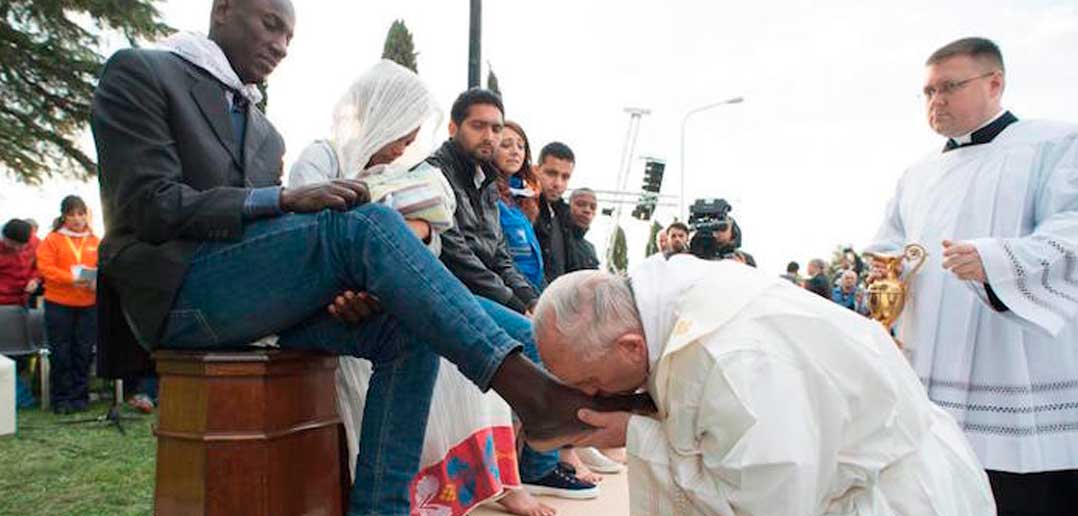 In timpul slujbei din joia de dinaintea Paştelui catolic, Papa Francisc a spălat şi a sărutat picioarele unor migratori, între care trei erau musulmani. Gestul a fost mediatizat de către Vatican şi presa catolică ca unul de smerenie şi frăţie.
