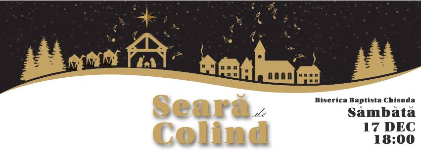 Biserica Baptista din Chisoda, organizează in data de 17 decembrie 2016, de la ora 18:00, o seara speciala de colinde.