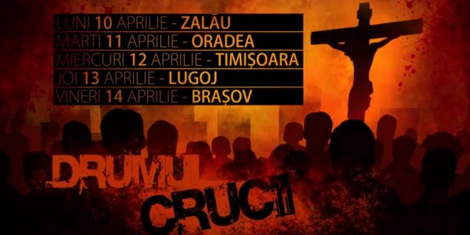 Acest marș va avea loc in 5 orașe din Romania. Denumit sugestiv Drumul Crucii – Cu moartea pe moarte călcând, evenimentul a ajuns în acest an la ediţia a doisprezecea. Marşul este o reprezentare dramatică a Drumului Crucii parcurs de Domnul Iisus Hristos înainte de moartea Lui.