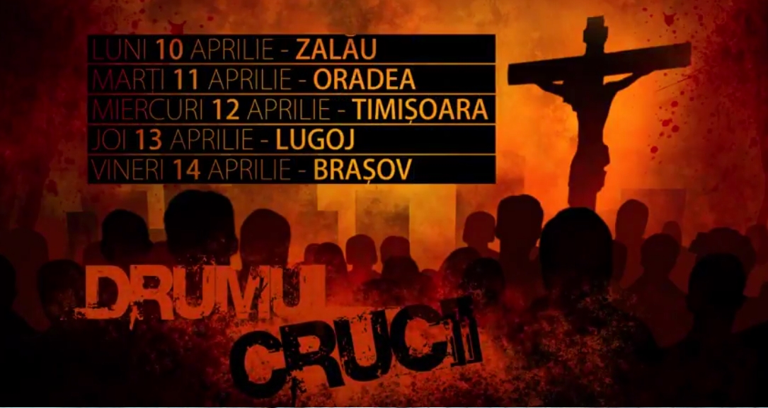 Acest marș va avea loc in 5 orașe din Romania. Denumit sugestiv Drumul Crucii – Cu moartea pe moarte călcând, evenimentul a ajuns în acest an la ediţia a doisprezecea. Marşul este o reprezentare dramatică a Drumului Crucii parcurs de Domnul Iisus Hristos înainte de moartea Lui.