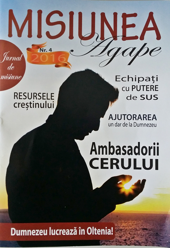 Săptămâna trecută Daniel Sepciuc din Londra a trecut pe RVE Suceava. Daniela Delibaş i-a luat un interviu privitor la implicarea celor de la Misiunea „Agape†în Oltenia. Pe lângă activitatea din teren ei au jurnal de misiune care apare periodic. Suceveanul Andrei Varasciuc se ocupă de grafica şi tehnoredactarea fiecărei ediţii care este coordonată de Florin Vatamaniuc. Au ajuns cu revista deja la numărul 4.