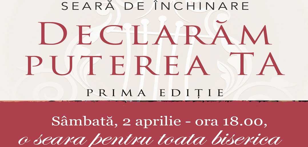 Sambata, 2 aprilie 2016, de la ora 18:00 – prima editie a serii de inchinare „Declaram puterea Ta” – o seara dedicata celor care iubesc inchinarea veritabila!