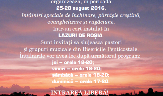 Seri de evanghelizare la cort în Lazuri de Roșia, judeţul Bihor august 18, 2016 Evenimente Crestine Leave a comment Share Facebook Twitter Google + LinkedIn Pinterest