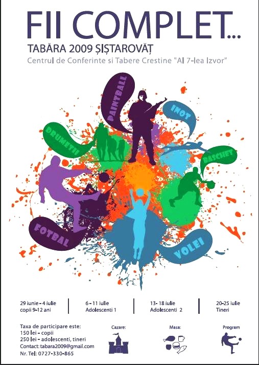 Vrei sa joci Paintball? Iti place sa inoti, si sa intalnesti tineri crestini din toata tara? Vino la tabara “Fii Complet…†de la Sistarovat. Tabara este organizata de biserici crestine evanghelice in colaborare cu organizatia ABWE.