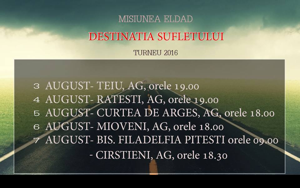 Misiunea ELDAD – Turneu în județul Argeș august 2, 2016 Misiune Leave a comment Share Facebook Twitter Google + LinkedIn Pinterest