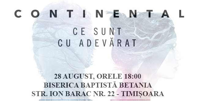 Grupul Continental va fi prezent la Biserica Baptistă Betania din Timișoara, duminică 28 august de la ora 18:00.
