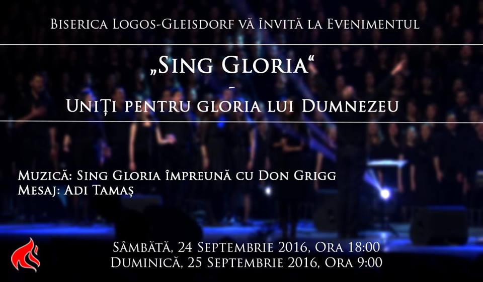 Sing Gloria – UniÅ£i pentru Gloria lui Dumnezeu septembrie 12, 2016 Concerte Leave a comment Share Facebook Twitter Google + LinkedIn Pinterest