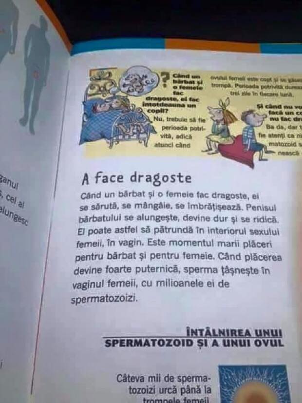 PuÈ›ină lume È™tie că în timp ce noi urmărim dezbaterile pentru prezidenÈ›ialele din America, ori scandalul pro sau contra DNA de la noi, un grup de ong-uri cu o agenda clară È™i cu o perseverență de invidiat lucrează „pentru copiii noÈ™tri”. Mai întâi fac tot ce pot pentru a elimina „Religia” din È™coală. Ca protestant evanghelic, deÈ™i s-ar putea să-i dezamăgesc pe unii, nu sunt mare admirator al predării religiei în È™coală. Cel puÈ›in nu sub forma în care se face acum. Dacă ar fi predate de oameni competenÈ›i niÈ™te lecÈ›ii de istoria creÈ™tinismului, istoria gândirii creÈ™tine, etica È™i morala creÈ™tină sau istoria muzicii creÈ™tine, nu aÈ™ avea obiecÈ›ii. Mă tem ca nu cumva injectarea cu religie să nu-i facă pe copii imuni la realitatea creÈ™tinismului sau chiar mici atei. Mă sperie, însă, insistenÈ›a acestor ong-sti de a elimina religia din È™colile publice È™i de a o înlocui cu educaÈ›ia sexuală. Nu contează pentru ei că părinÈ›ii cu o majoritate covârÈ™itoare au decis pentru a-È™i înscrie copiii la orele de religie, inclusiv eu È™i nu contează nici că majoritatea părinÈ›ilor È™i dascălilor de la noi resping aÈ™a numita „educaÈ›ie sexuală”, susÈ›inătorii acestei aberaÈ›ii își continuă asaltul. Pe ce se bazează? Pe politicieni corupÈ›i care le vor promova iniÈ›iativele anormale, pe familii preocupate cu orice altceva decât sufletul scump al copiilor lor È™i pe liderii bisericilor ocupaÈ›i cu „cele sfinte” în interiorul zidurilor bisericilor È™i absenÈ›i din lumea reală È™i extrem de periculoasă pentru viitorul copiilor noÈ™tri. AtaÈ™ez fotografia unei pagini dintr-un manual de educaÈ›ie sexuală pregătit pentru elevii de clasa a IV a, adică pentru niÈ™te copii de 10 ani. Dragi părinÈ›i, vă las să decideÈ›i singuri cât de educaÈ›i vor fi copiii voÈ™tri în urma acestor lecÈ›ii concepute de niÈ™te oameni care confundă perversiunile cu educaÈ›ia. Cât despre noi, preoÈ›i sau pastori, oameni chemaÈ›i de Dumnezeu să fim vocea Lui în vremuri ca È™i acestea, mă gândesc că vom avea de dat niÈ™te răspunsuri despre tăcerea noastră vinovată. Ne vor întreba bisericile pe care le slujim, ne vor întreba generaÈ›iile care vin, dar mai ales ne va întreba Dumnezeu…de ce tăcem când nu e vremea pentru tăcere?