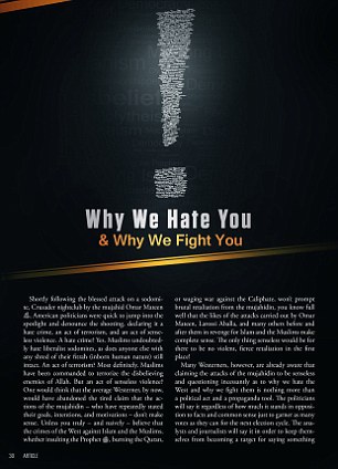 „In primul rand, si cel mai tare, va uram pentru ca sunteti necredinciosi. Voi respingeti unicitatea lui Allah, indiferent daca realizati sau nuâ€, scrie editorialistul ISIS.